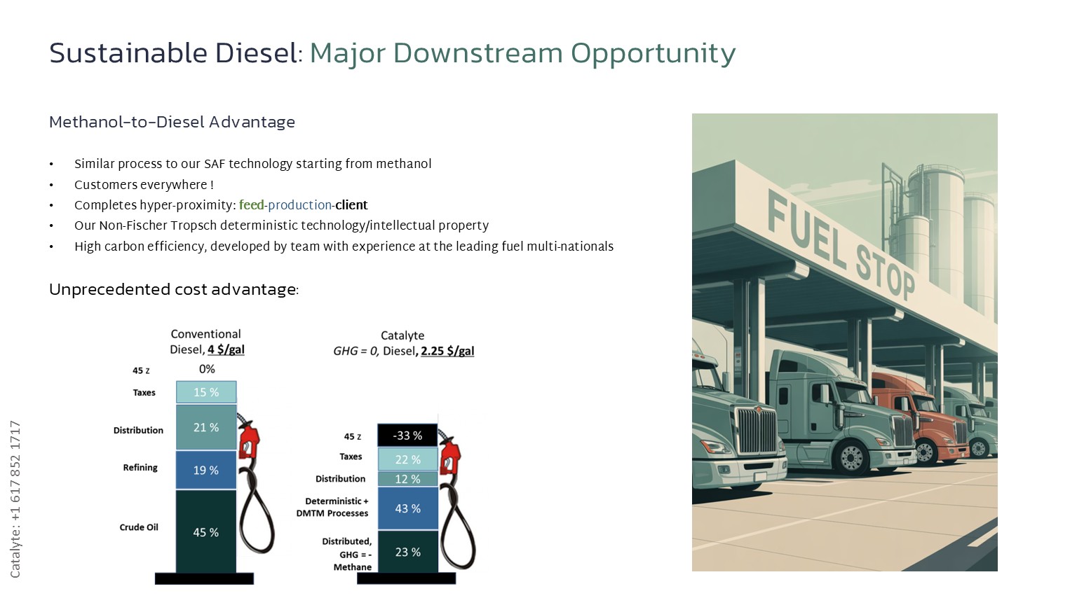 - 3: Conventional diesel produced at lower CAPEX + OPEX than classical refining.
